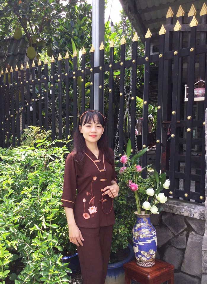Đồ Lam Đi Chùa Xéo Nút Gỗ Vải Đủi mẫu pháp phục mang phong cách trang nhã, kín đáo nhưng vẫn nổi bật nhờ thiết kế vắt chéo tinh tế và cài nút gỗ thủ công. Kiểu áo vắt xéo từ vai xuống thân tạo điểm nhấn mềm mại, duyên dáng, giữ vững nét truyền thống nhưng vẫn có chút hiện đại nhẹ nhàng.