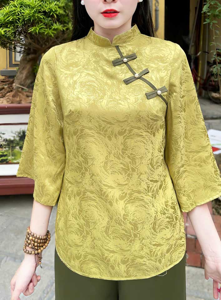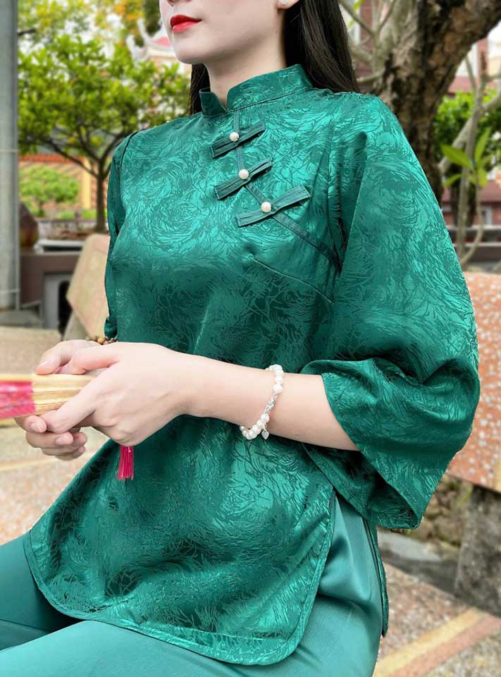 Đồ Lam Đi Chùa Tàu 4 Nút Vải Gấm là kiểu trang phục truyền thống mang đậm nét trang nghiêm, cổ điển và thanh thoát, thường được sử dụng trong môi trường chùa chiền. Thiết kế chú trọng sự kín đáo, nhẹ nhàng nhưng vẫn có điểm nhấn nhờ hàng 4 nút vải đặc trưng kiểu tàu và chất liệu gấm hoa cao cấp.